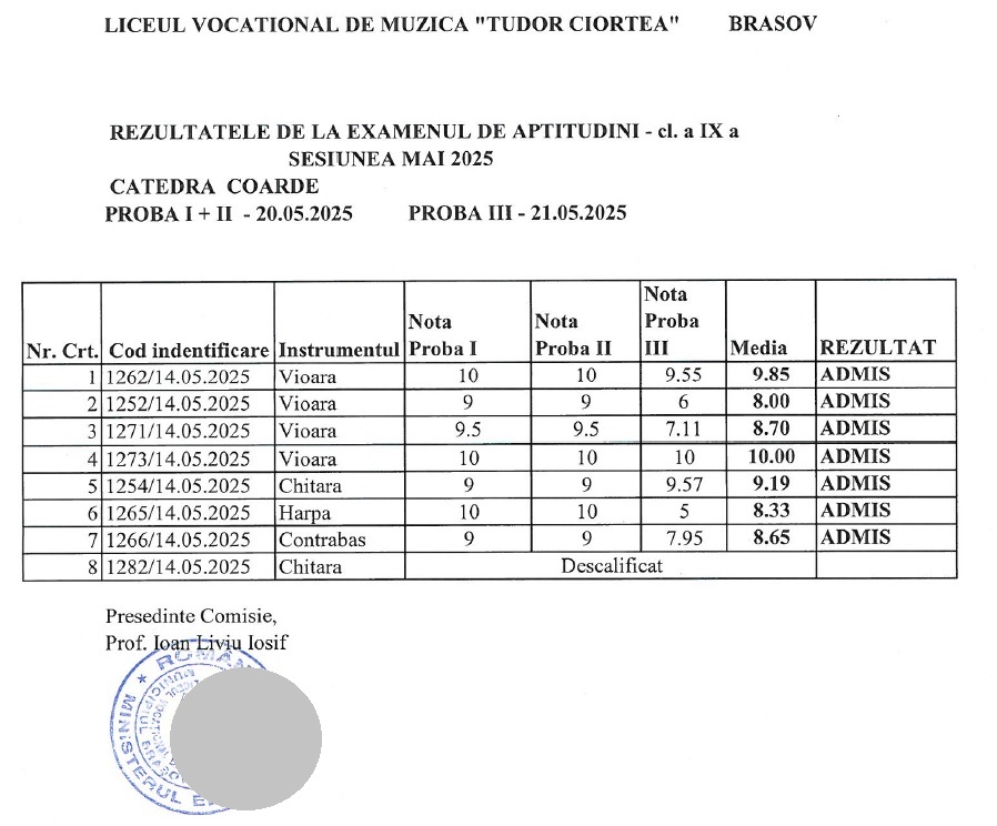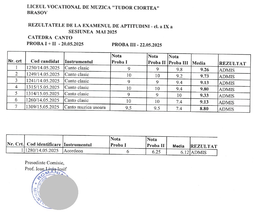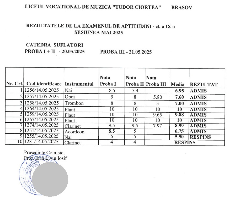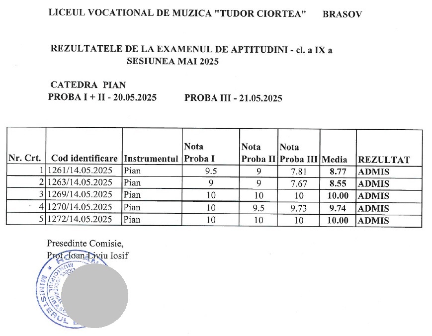 Proba de aptitudini specifice: auz, ritm, teorie muzicală |