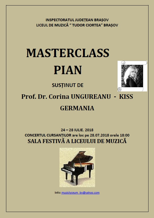 * 24 - 28 iulie 2018 - MASTERCLASS - PIAN